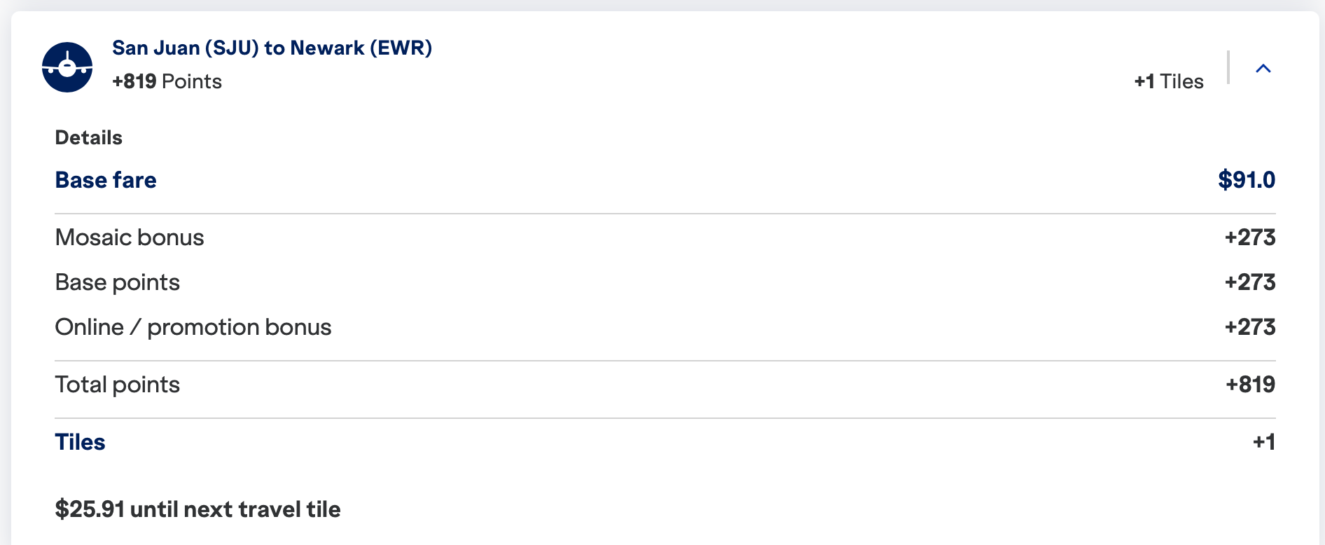 Most airlines, including JetBlue, credit your loyalty account based on your original ticketed route when there's an IRROP. Since our flight change was involuntary due to a mechanical, JetBlue's system still shows the original SJU-EWR segment in our account.